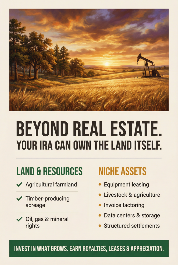 They’re not the most common investments in IRAs, but they’re fully allowed and can be a strong fit for investors who understand land and resource-based markets.