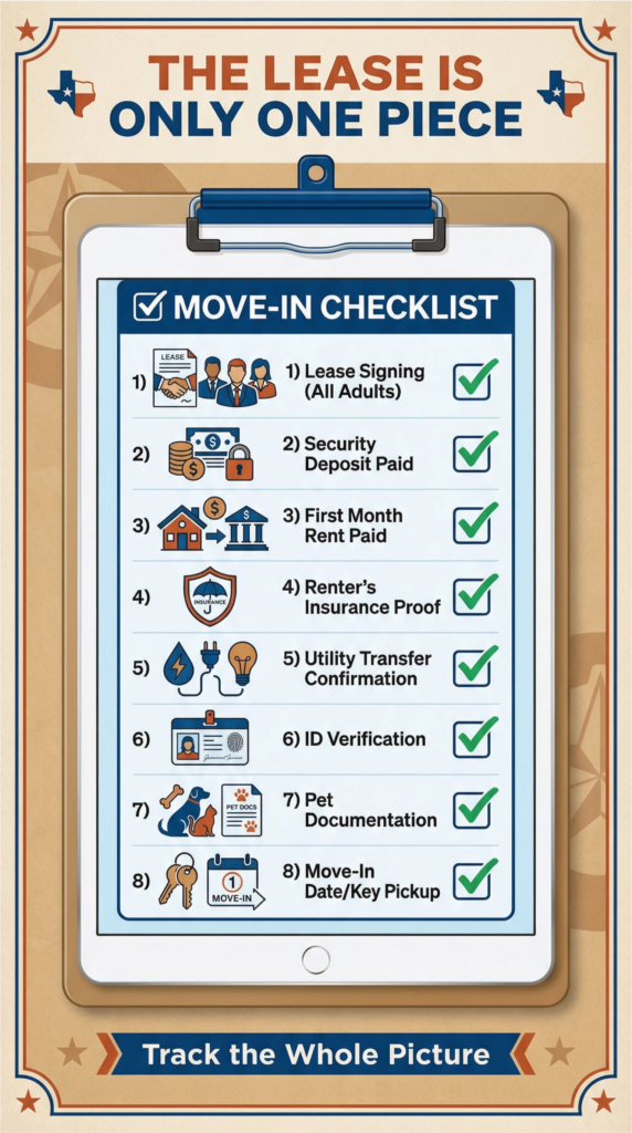 If you only remind people to “sign the lease,” you’ll still get stuck waiting on money, insurance, or utilities.