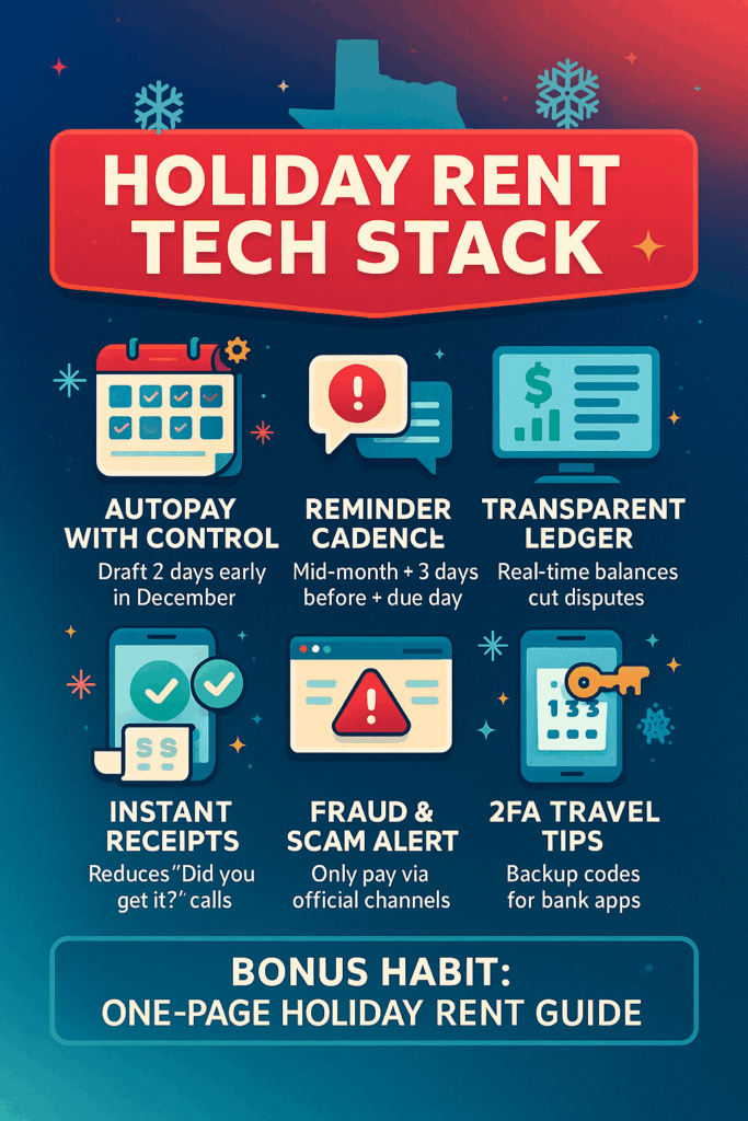 Share a one-page “Holiday Rent Guide.” Tenants appreciate clarity. Include office closures, contact numbers, acceptable payment methods, and a bolded note: “Payments initiated Dec. 31 may post Jan. 2–3. Submit by Dec. 30 to ensure on-time receipt.”