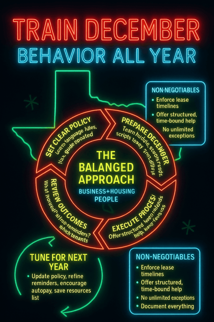 You run a business—and you house people. December will test both truths. Let the lease and your process carry the weight while you bring clarity and seasonal grace: