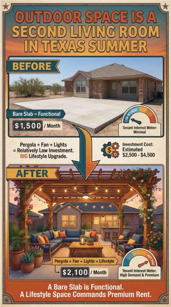 In the Texas summer, tenant priorities are clear: they want to be cool, they want their utility bills to be manageable, and they want to enjoy the long evenings. Your investment strategy should align directly with these market demands.