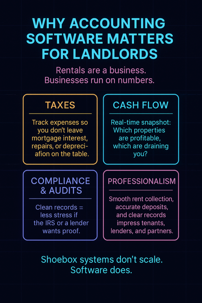Accounting software isn’t just about numbers—it’s about peace of mind. With the right system in place, you can spend less time chasing receipts and more time growing your rental business, serving tenants, and enjoying the reason you became a landlord in the first place.