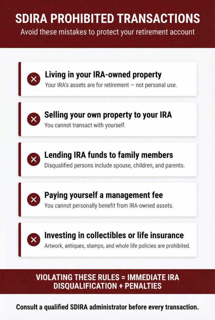 While SDIRAs offer flexibility, they also come with specific rules. The IRS strictly regulates how you invest and with whom.